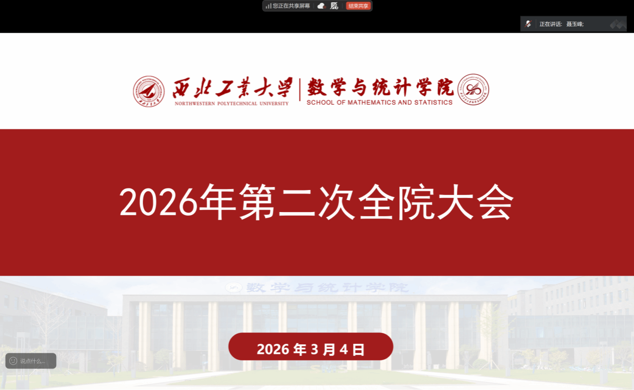 3月4日晚上,数学与统计学院线上召开2026年第二次全院大会。学院全体教职工参加了本次会议,会议由数学与统计学院党委书记王莉主持。会上,王莉首先传达了校党委书记李言荣、校长宋保维在2026年寒假务虚会及新学期中层干部会上的重要讲话精神,带领与会人员深入学习了学校“十五五”规划“一十百千”核心发展指标的战略内涵,并对学校2026年工作要点进行了系统解读。结合政绩观学习教育有关要求,王莉强调,全体教职工要深刻领......