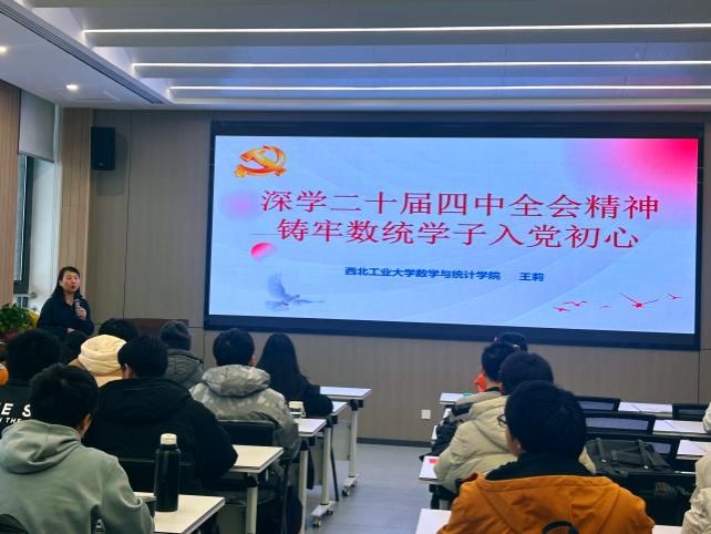 为深入学习贯彻党的二十届四中全会精神,引导学子坚定理想信念、铸牢入党初心,12月11日下午,数学与统计学院党委特邀王莉书记为全体2025年秋季发展对象讲授“深学二十届四中全会精神,铸牢数统学子入党初心”专题党课。