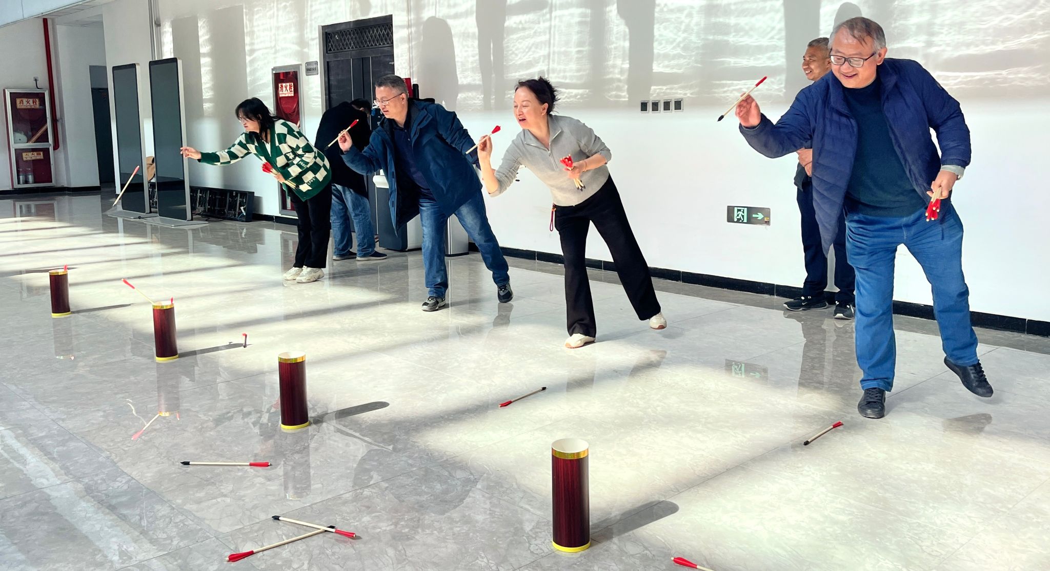 “投壶掷准”区域则上演着“古典智慧与现代数学”的碰撞。老师们手持箭矢,在瞄准、投掷的过程中不自觉运用几何角度,将昔日黑板上的“抛物线公式”,变成此刻手中的“精准投掷指南”。大家笑称:“古代投壶里也蕴含着数学奥秘,这真是一场生动的数学文化课。”