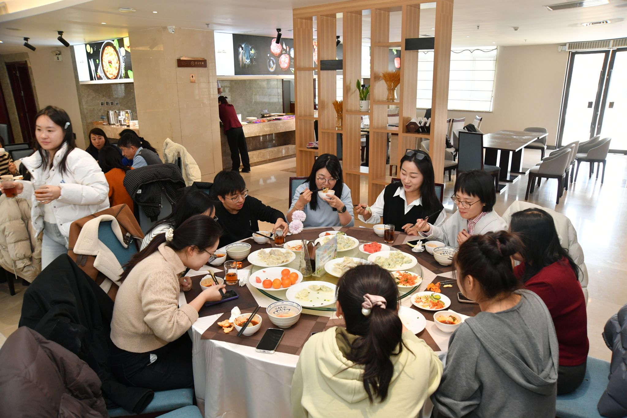 冬至寒意浓,人间温情暖。为进一步传承中华优秀传统文化,增强学院的凝聚力与向心力,12月19日冬至佳节来临之际,数学与统计学院工会在长安校区南山苑餐厅精心组织了“情暖冬至·聚力九章”包饺子活动。学院党委书记王莉、副院长郭千桥、工会主席佘红伟以及近30名教职工欢聚一堂,在欢声笑语中共同体验包饺子的乐趣,感受传统节日的独特魅力。