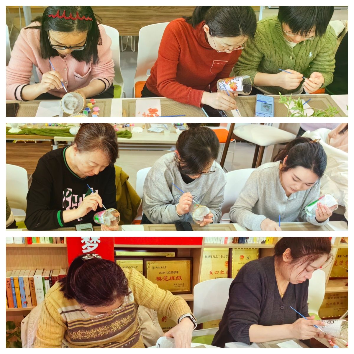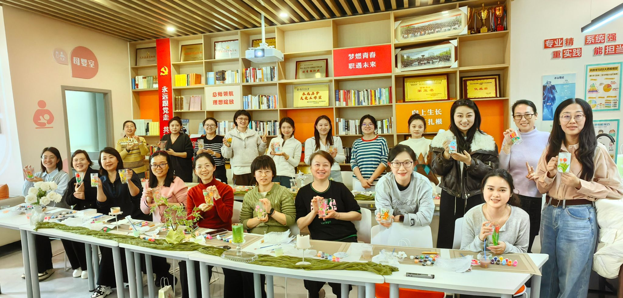 春风拂面,万象更新。在第116个“三八”国际妇女节来临之际,为进一步丰富学院女教职工的精神文化生活,展现新时代女性积极向上的精神风貌,3月5日下午,数学与统计学院工会在长安校区海天苑大楼学院教工之家精心组织了一场别开生面的手绘玻璃杯活动。学院党委书记王莉、工会主席佘红伟与二十余位女教职工齐聚一堂,以笔为媒,以色绘光,在方寸之间勾勒春意,于色彩之中凝聚力量。