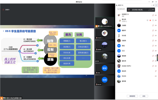 在经验分享环节,计算机学院王云岚副教授从为师之道、学业规划、日常管理、风险管控等8个方面介绍班级管理心得,强调了因材施教、分类指导等细节管理的重要性。王云岚老师在分享中还提出,“管理好学生的最好时机是大一开学,其次是现在”,班主任老师应充分发挥自身专业优势,全面提升班级学生的专业素养及创新能力。紧接着,数学与统计学院裴斌教授作《全过程精准画像、全方位整合资源、全覆盖帮扶提升》专题分享。裴斌老师强调了坚持为党育人、为国育才的初心使命,介绍了“以学生为中心、润物细无声”的班级育人理念,提出了贯穿班级管理始终的“三航筑梦、促学笃行、强基固本、创新赋能、塑造价值”思想,并就“导学+必学+互学+督学”的班级管理模式进行了着重分享。随后,计算机学院林奕副教授以《我有一个梦想》为主题,从培养什么样的学生、学生类别、学生成长的动机与特殊学生指导、班级管理存在的问题与建议等4个方面展开分享,重点指出人才培养的任务不仅仅是传承而是超越。此外,林奕老师提出了建立班主任工作资源库、班委工作指南、建立心理专家支持渠道等班级管理方面的可行性建议。通过三位老师对班主任工作的理解、感悟和思考,与会人员均表示参加本次交流会收获颇丰,为今后做好班主任工作指明了方向。