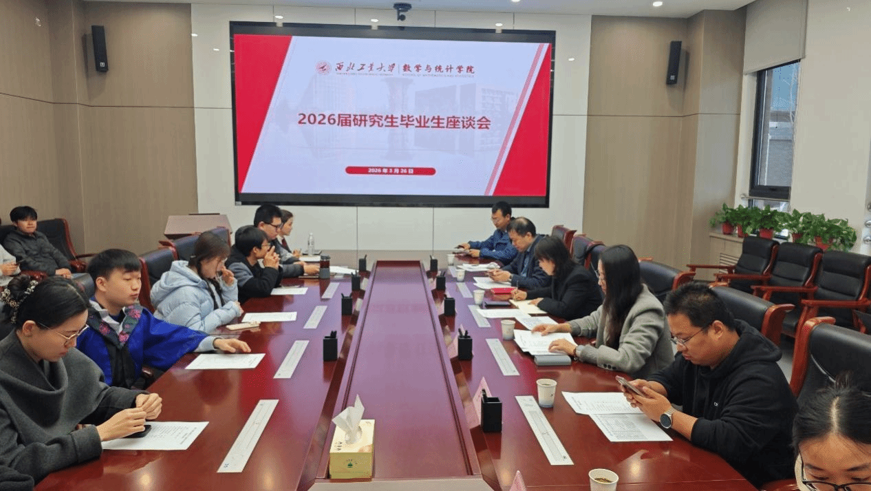 为倾听毕业生心声,凝聚发展共识,搭建学院与毕业生的沟通桥梁,3月26日上午,西北工业大学数学与统计学院2026届研究生毕业生座谈会在长安校区海天苑大楼E座103顺利召开。学院党委书记王莉,副院长徐根玖,党委副书记张莹,数学科学系副主任夏健康,计算科学系副主任荆菲菲,应用概率统计系主任王亮,研究生教学秘书王萱、杨洋,综合办公室秘书原姗,专职辅导员张佳翌及2026届研究生毕业生代表参加本次座谈会,共同为学院发展建言献策。