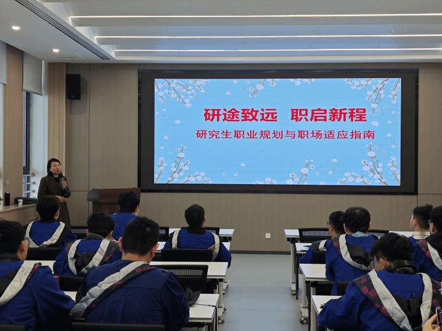 课程伊始,王莉书记向全体顺利完成学业、即将开启人生新征程的毕业生们,致以最热烈的祝贺与最诚挚的期许。课堂上,王莉书记以“研途致远 职启新程——研究生职业规划与职场适应指南”为核心主题,从心理学、人力资源管理、社会学与经济学的多元整合视角,拆解了个人特质与职场需求的适配逻辑。针对毕业生从校园步入职场的身份转换痛点,她为同学们梳理了职场适应的核心要点:既要主动完成心态调适,以开放包容的状态应对职场环境的变化;也要深耕岗位细节,在每一项工作中复盘总结、沉淀成长,用脚踏实地的付出换取行稳致远的收获。