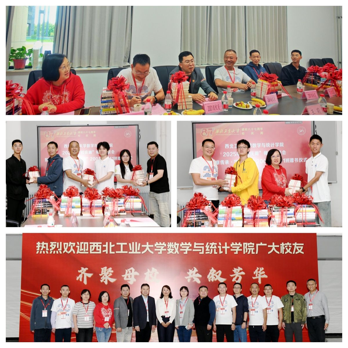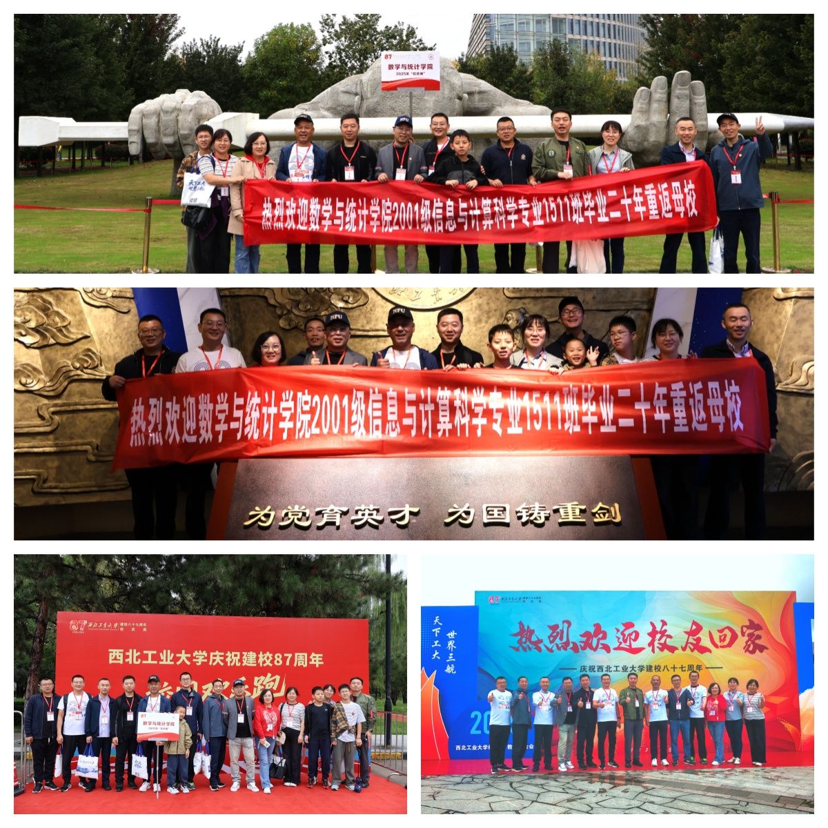 为庆祝西北工业大学建校87周年,进一步展示学校、学院办学成效,凝聚发展共识,激发广大师生、校友爱校荣校意识,汇聚发展力量。经过近一个月的精心筹备,10月7日,数学与统计学院在友谊、长安两校区成功举办了“重走校园路”、“重温毕业午餐”、师生座谈会、主题班会、捐赠仪式等一系列校友集中返校活动,内容丰富,意义深远。学院党委书记王莉,院长聂玉峰,对外联络办公室副主任苟兴旺,学院副院长徐根玖、都琳,校院资深教师代表张凯舟、张雪霞、彭国华、苟定邦、佘红伟等,分别与学院1981级、2001级三个返校班级的50余位校友欢聚一堂,畅叙别情,展望未来。