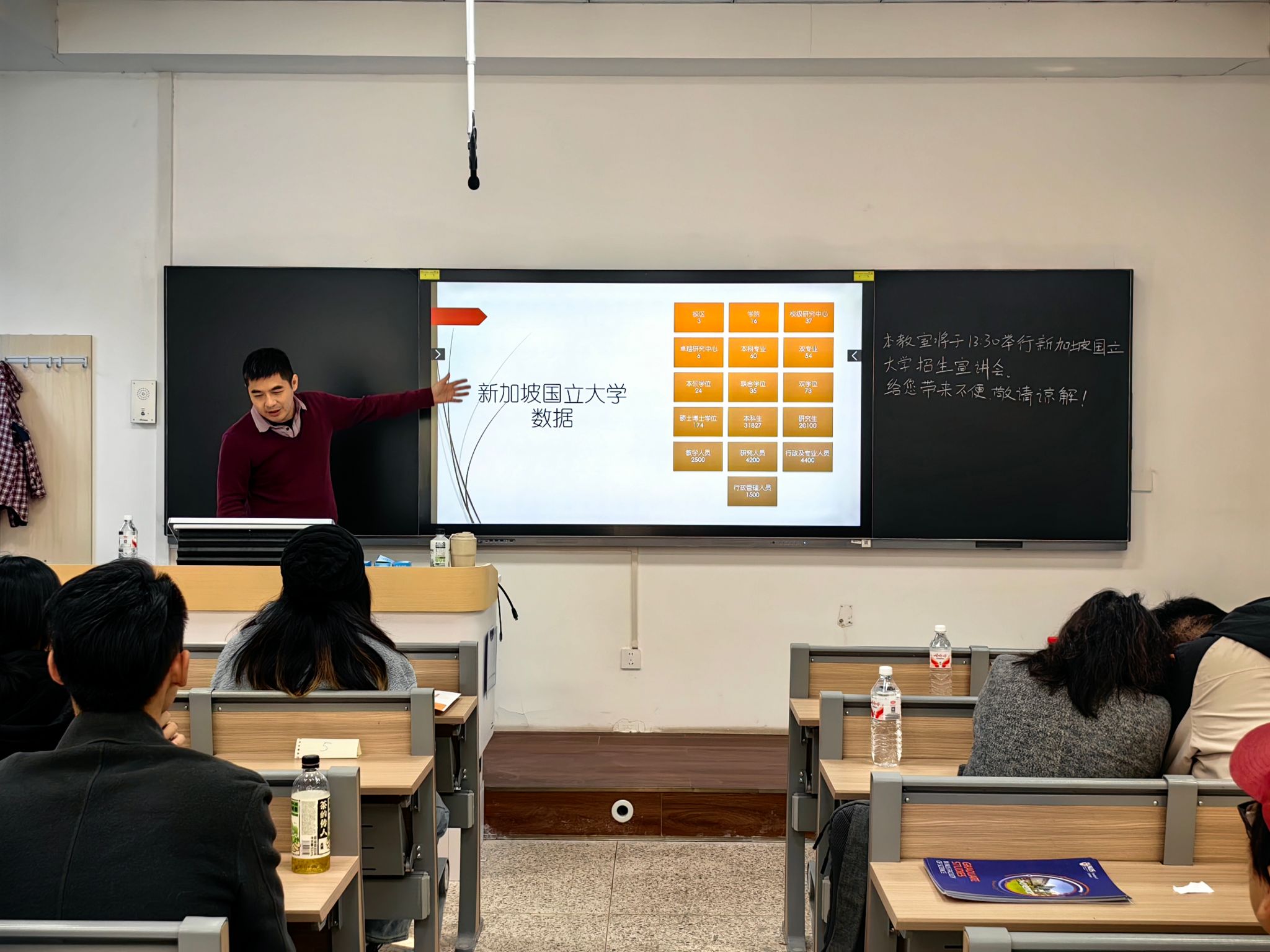 随后,新加坡国立大学王飞教授与 Joanna 老师联袂分享。王飞教授首先介绍院校硬核实力:新加坡国立大学 2025 年 QS 世界排名第 8 位,新加坡及亚洲排名均位列第 1,其数学专业、统计专业、数据科学专业分别跻身 QS 世界排名第 9、第 10 和第 7 位,在基础数学、应用数学、计算数学等领域积淀深厚,拥有顶尖师资团队与丰富科研资源。针对学生关注的硕博项目,他从学术背景要求、语言能力标准、培养模式特色、就业前景等核心维度展开介绍。Joanna 老师则补充了申请流程中的关键节点与材料准备要点,鼓励学生提前夯实核心课程、提升学术英语能力。
