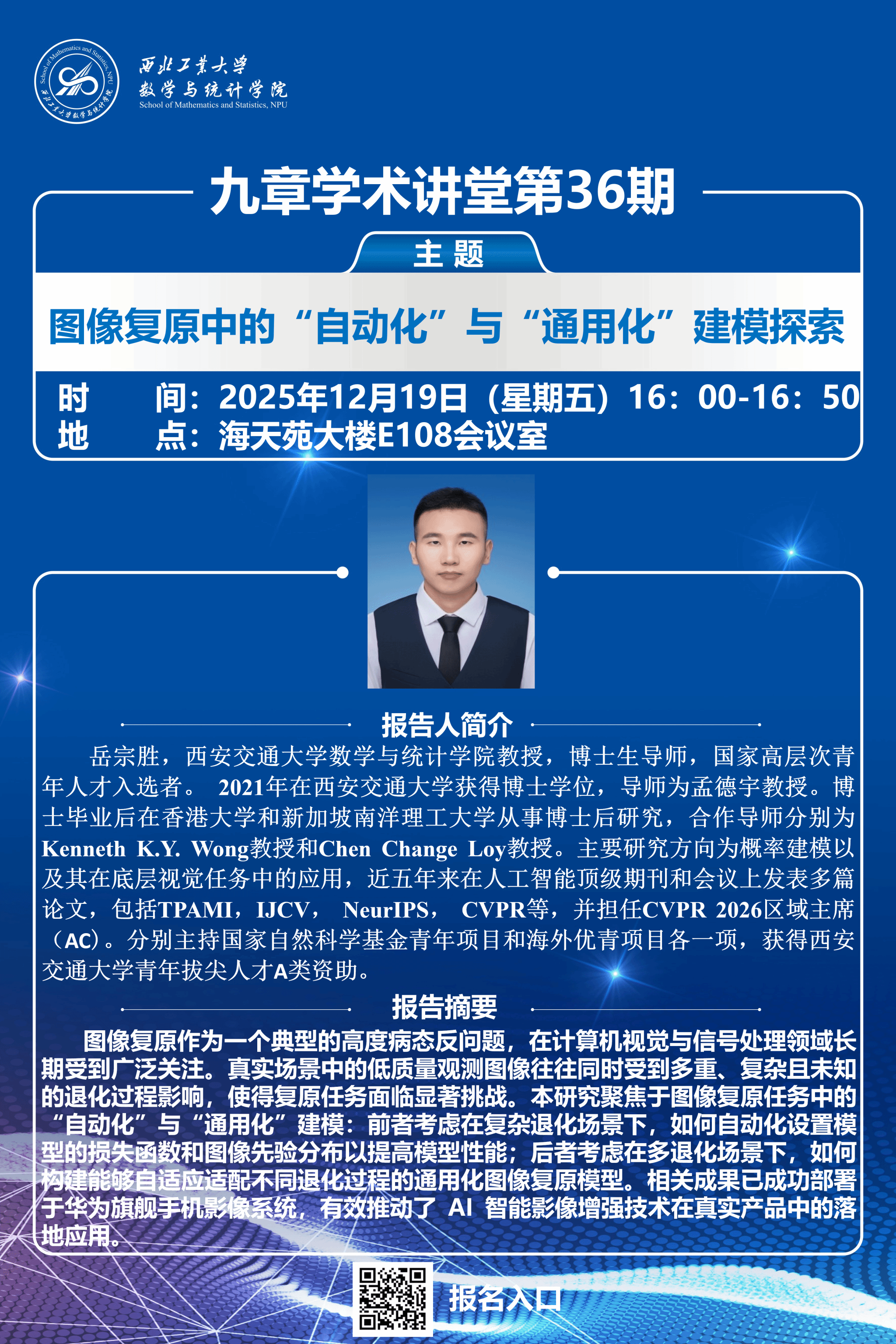 【九章学术讲堂第36期】图像复原中的”自动化”与“通用化”建模探索
