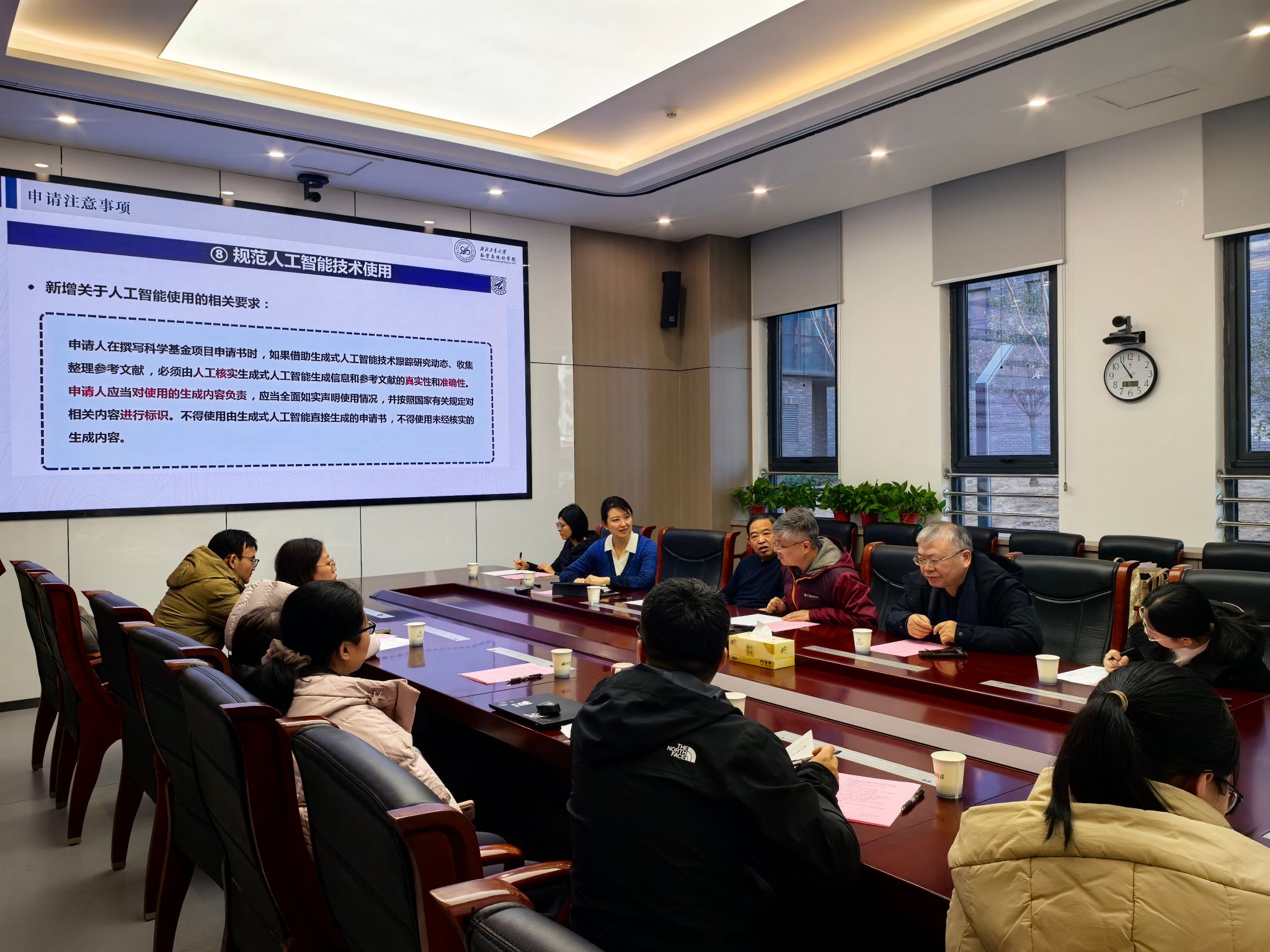 在交流研讨环节,各团队负责人和联系人分别介绍了所在团队的申报准备情况,并就如何动员尚未申报的教师积极参与、鼓励具备条件的教师申报人才类项目等进行了深入讨论。与会人员一致认为,应进一步发挥团队协作优势,加强对青年教师和重点申报项目的针对性指导,注重提升申报材料的学术内涵与逻辑体系,切实增强项目竞争力。
