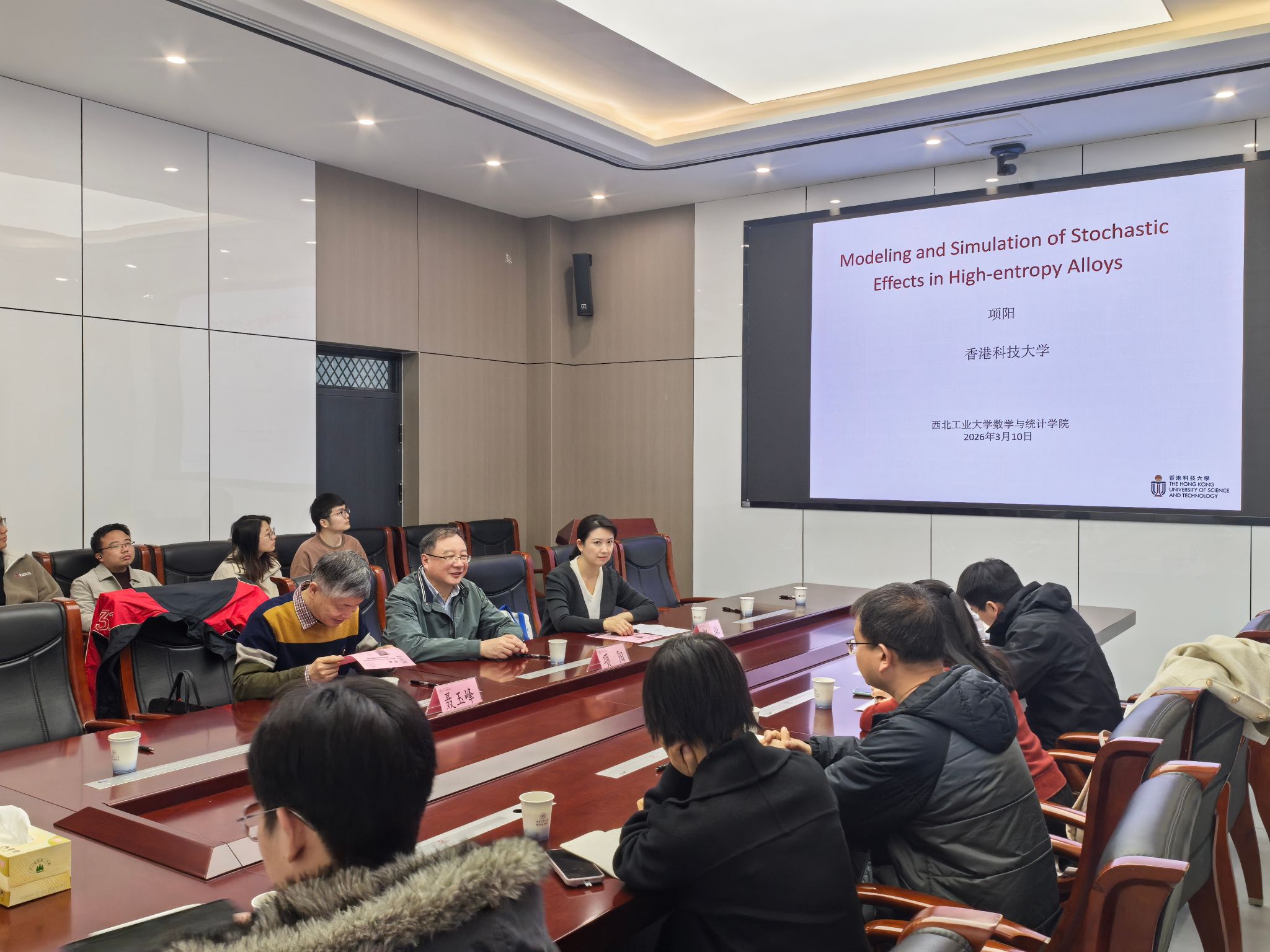 3月11日上午,“翱翔灵犀学术殿堂”第932期在长安校区海天苑大楼E103会议室举行。香港科技大学数学系项阳教授应数学与统计学院邀请作题为《Modeling Effects of Randomness in High Entropy Alloys》的学术报告。学院院长聂玉峰教授、副院长都琳教授等20余位师生参会,报告由聂玉峰主持。