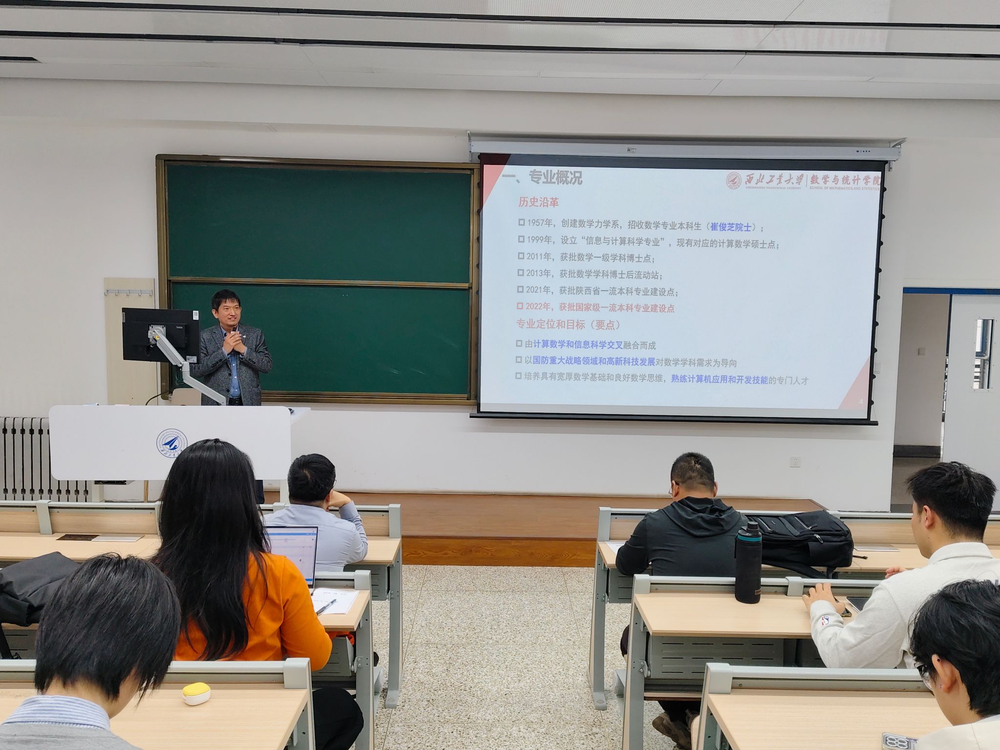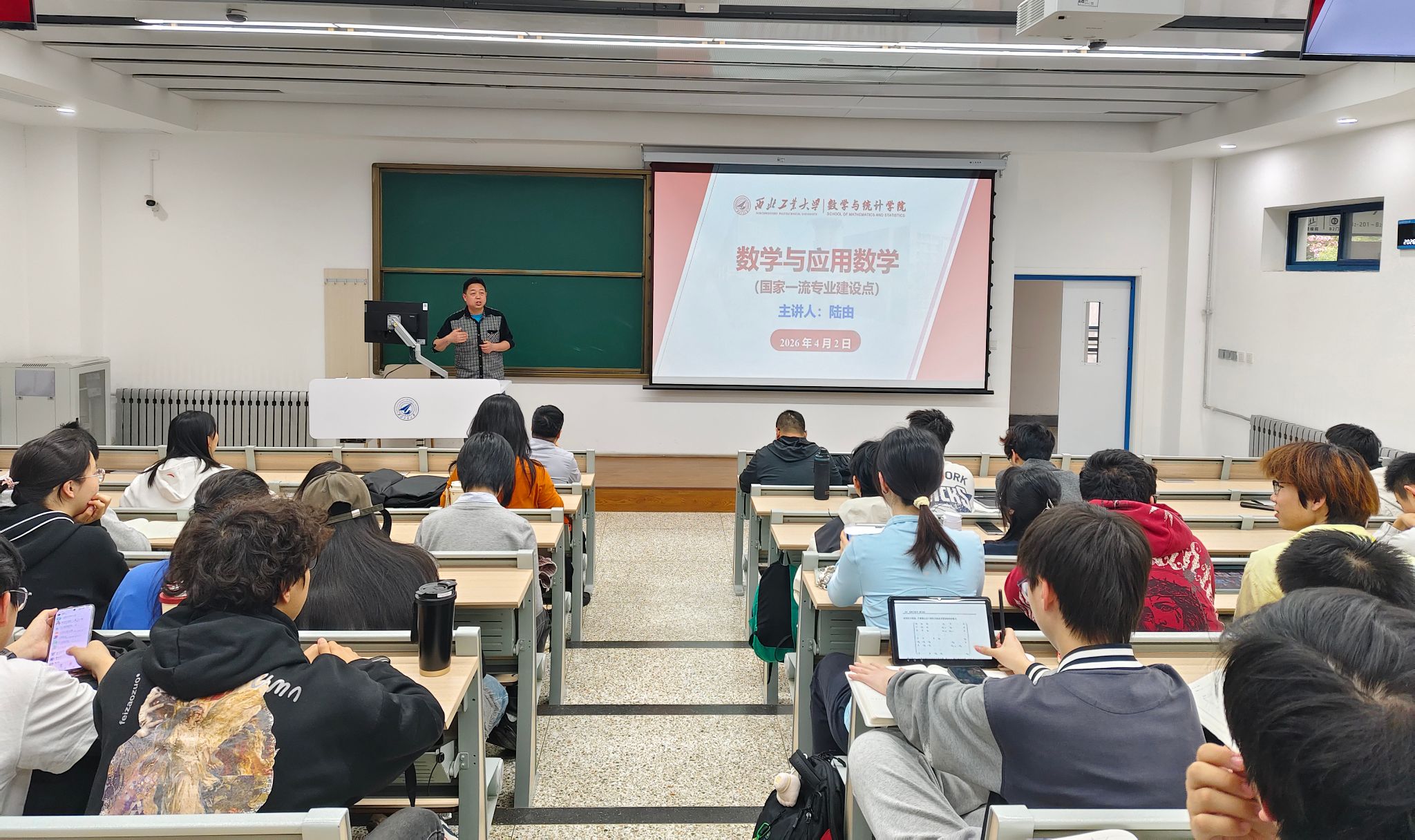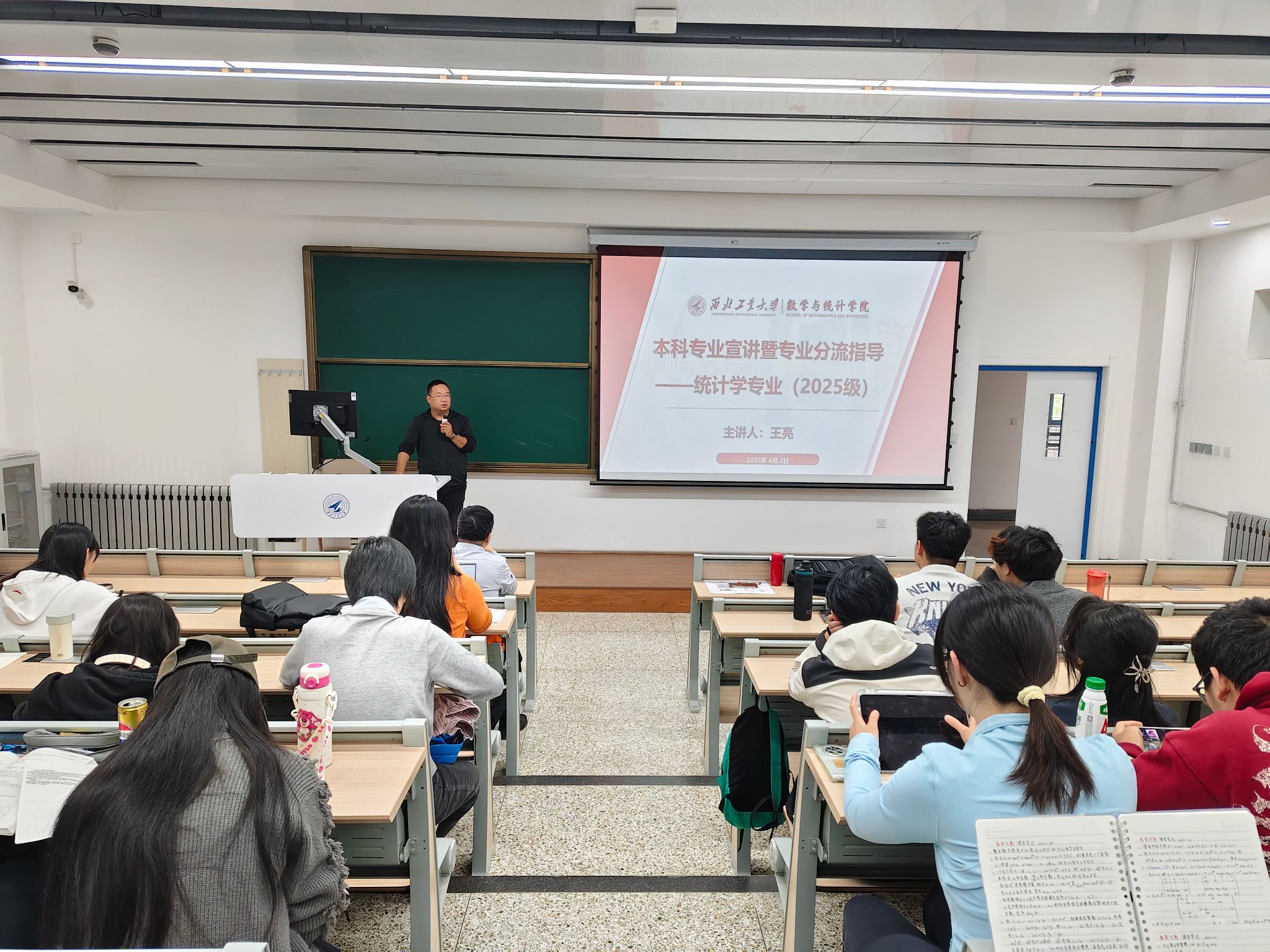 为深入推进“总师育人文化”走深走实,帮助2025级本科生全面了解专业方向、科学规划学业发展,2026年4月2日,数学与统计学院在教西B2-204召开专业宣讲会。副院长郭千桥、数学科学系主任陆由、计算科学系主任赵俊锋、应用概率统计系主任王亮、2025级辅导员张倩、教学秘书李彦吉及全体2025级本科生参会。会议由郭千桥主持。