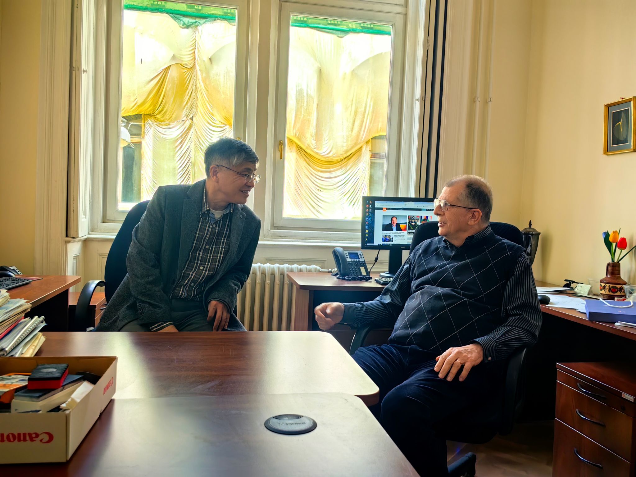 4月16日,代表团访问阿尔弗雷德・雷尼数学研究所,与Ervin Győri教授举行会谈。聂玉峰院长表示,雷尼数学研究所与我院图论研究团队长期保持密切科研合作与学术往来,合作基础扎实、成果显著。希望以此次访问为新契机,进一步深化团队联合攻关、青年学者互派、学术资源共享与高水平论文联合发表,同时依托雷尼数学研究所的人才资源优势,搭建海外引才桥梁,吸引研究所优秀青年学者来校,持续提升两校在相关研究领域的国际学术影响力。