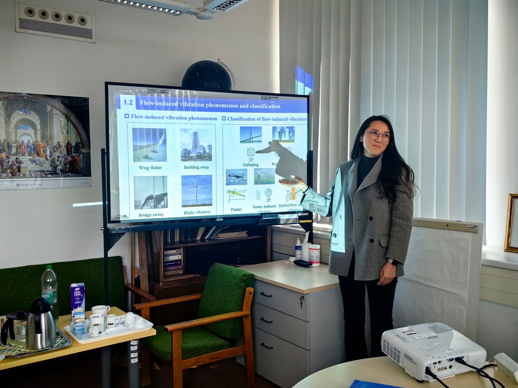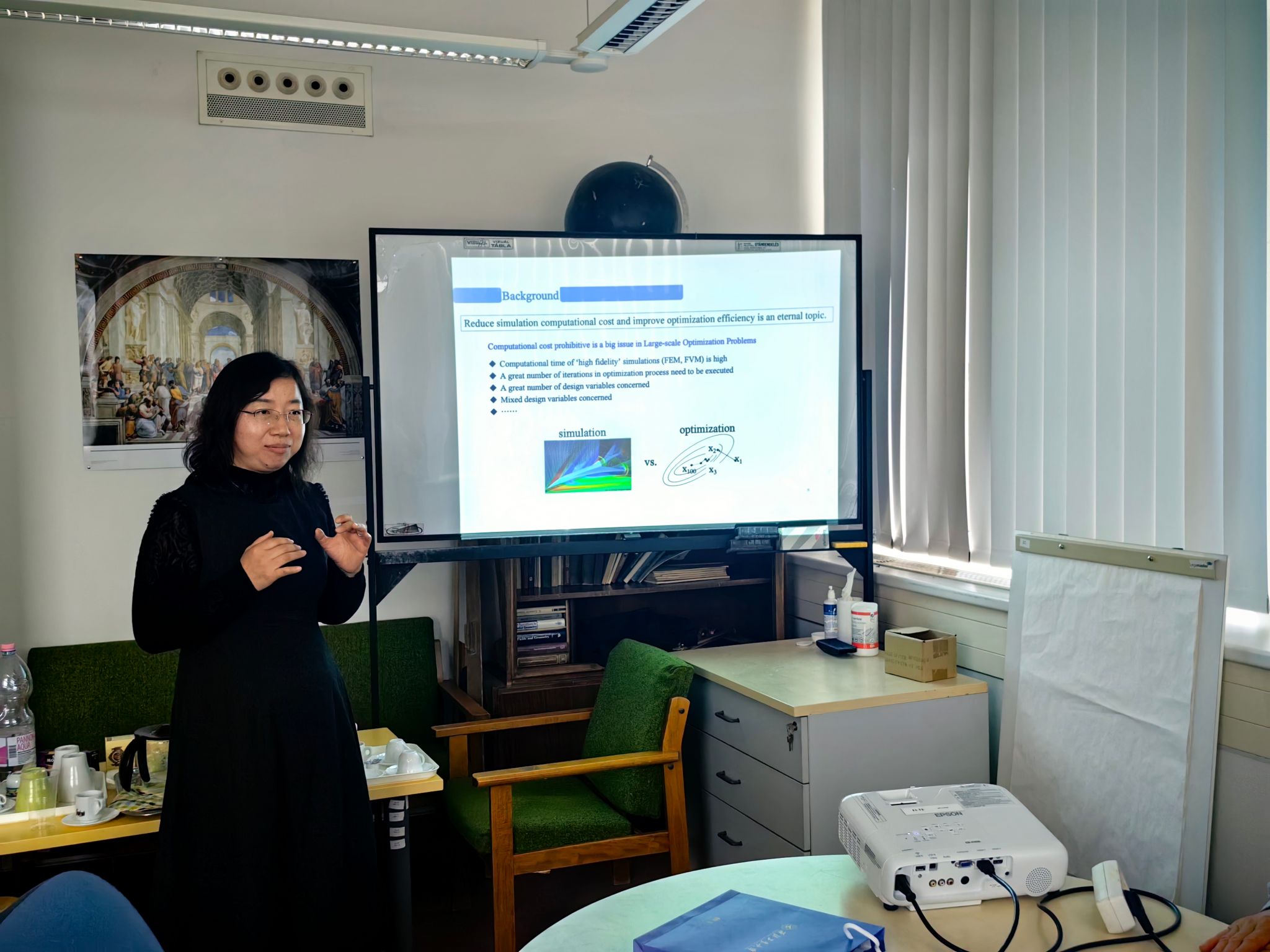 当地时间4月15日-16日,中匈数据科学与技术双边研讨会在匈牙利罗兰大学顺利举行。作为匈牙利综合排名第一的研究型大学、欧洲常春藤盟校之一,罗兰大学拥有近400年历史,培育了众多诺贝尔奖、阿贝尔奖得主,其数学研究所更是在离散数学、几何等领域享誉全球,与我校数学与统计学院有着深厚的学术渊源与合作潜力。会议由罗兰大学数学研究所所长Péter Sziklai教授主持,会议共设5场学术报告。我院张莹教授、肖曼玉教授分别作了题为《Random response and reliability analysis of a galloping piezoelectric energy harvesting system》、《Multi-fidelity Reduced-order Optimization Algorithm》的学术报告。匈牙利罗兰大学三位学者分别展示前沿研究进展:Péter Sziklai教授介绍了有限域上伽罗瓦几何的子结构理论及多项式方法的相关研究成果;Tamás Király教授报告了离散结构上优化问题的算法设计与结构特性研究;Szilárd Szabó副教授分享了希钦方程一类奇异解空间构成超凯勒流形的相关理论工作。